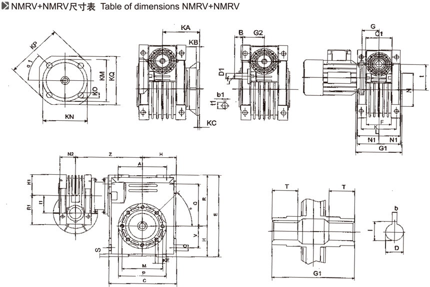 - NMRV+NMRV雙蝸輪減速機(jī)特點(diǎn)與安裝尺寸表