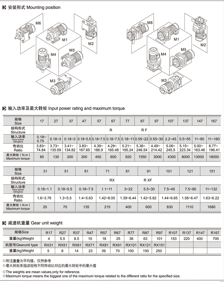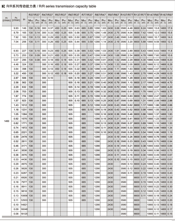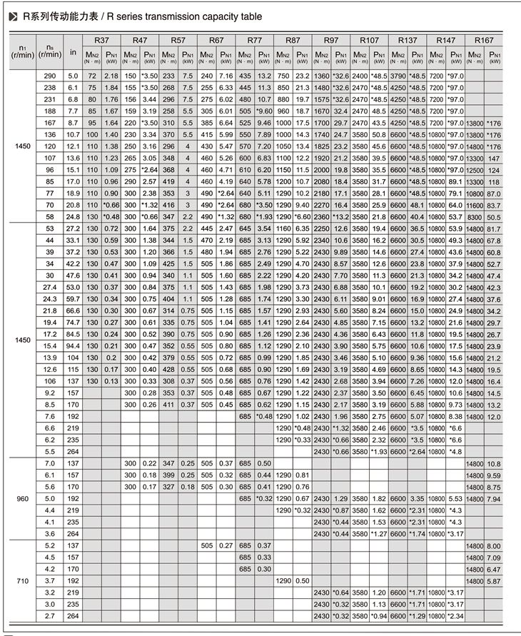 R系列斜齒輪減速機技術(shù)參數(shù):
