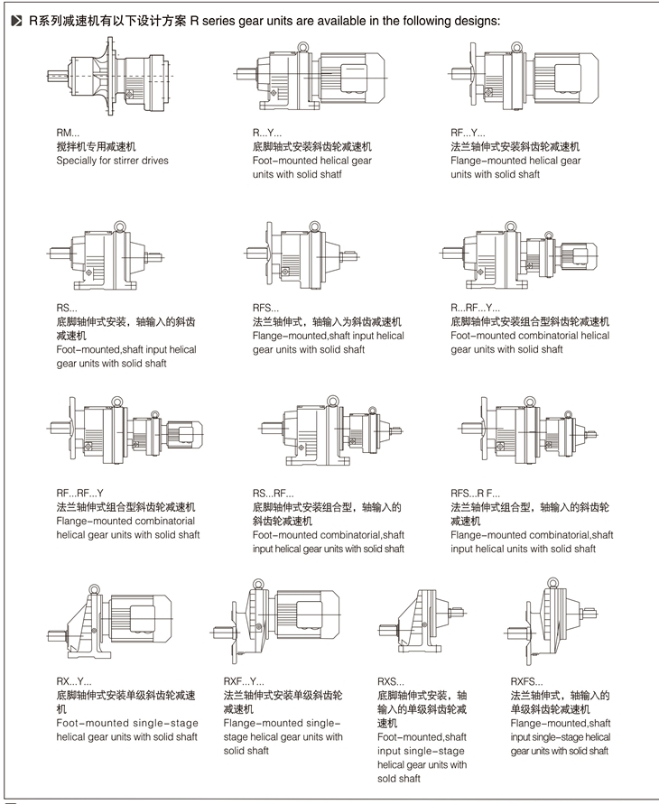 R系列斜齒輪減速機結(jié)構(gòu)形式:
